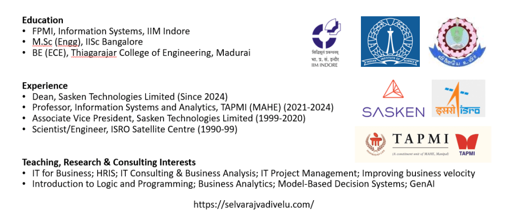 About Myself Academic Qualifications Research Areas Teaching Areas Consulting Areas Current Activities Guidance to student projects Publications Invited Talks Work Experience Awards & Honors Share this: Click to share on WhatsApp (Opens in new window) WhatsApp Click to share on X (Opens in new window) X Click to share on LinkedIn (Opens in new window) LinkedIn Click to email a link to a friend (Opens in new window) Email Click to print (Opens in new window) Print Like Loading...
