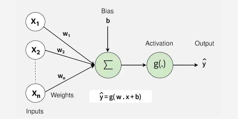 This process of weighted summation and activation is repeated for every neuron in the hidden layers, with the output of one layer becoming the input for the next. The final output of the network is the prediction generated by the output layer.