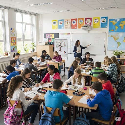 Prompt: Generate an image of a class room with students