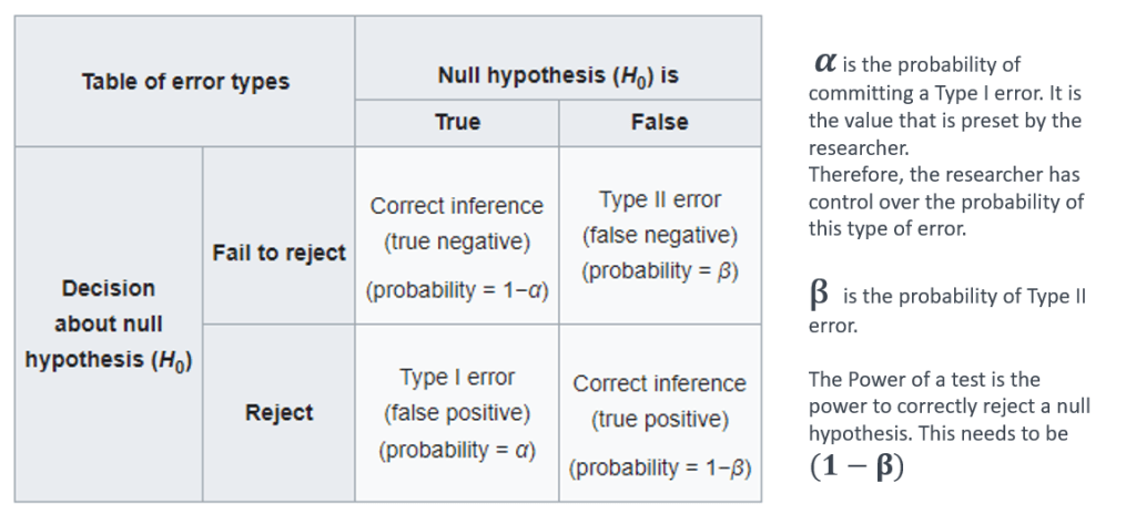 Type I and Type II errors in Statistical Testing