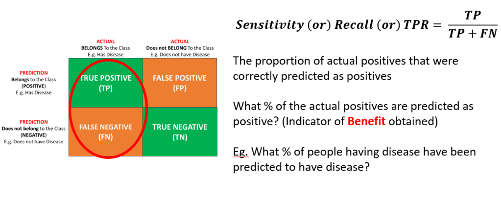 Sensitivity/Recall/True Positivity Rate(TPR)