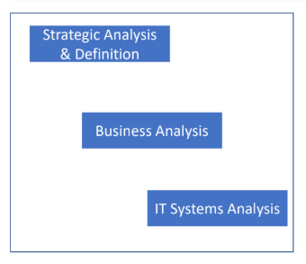 - Business Analysis Planning and Monitoring: organize and coordinate the efforts of business analysts and stakeholders
