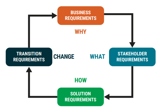 These are the capabilities that the solution must have and the conditions the solution must meet to facilitate the transition from the current state to the future state, but which are not needed once the change is complete. They are differentiated from other requirement types because they are of a temporary nature. Transition requirements address topics such as data conversion, training, and business continuity.